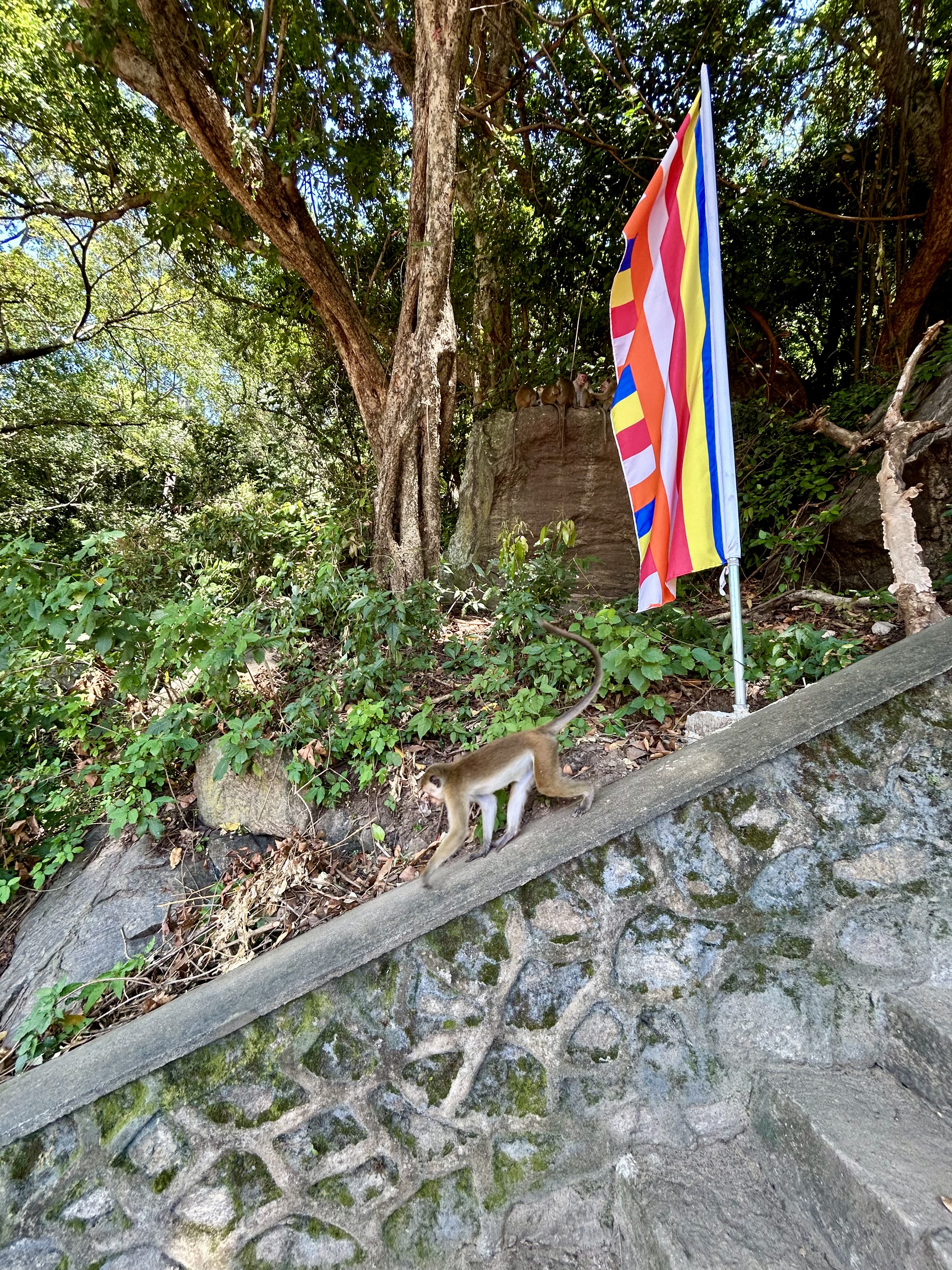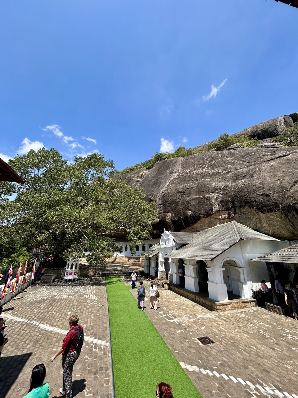 4時間ほど車に乗り、まずはスリランカ中部の町ダンブッラにあるダンブッラ石窟寺院へ向かいました。お猿さんが沢山いる石の階段を登りきった、山の上にあります。