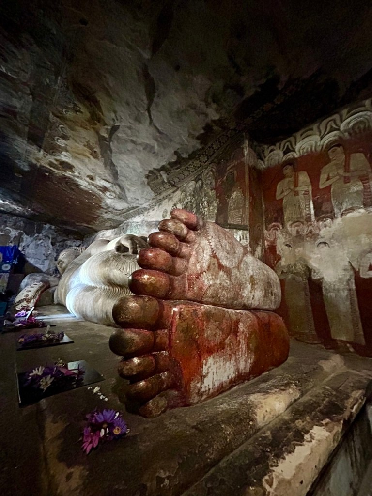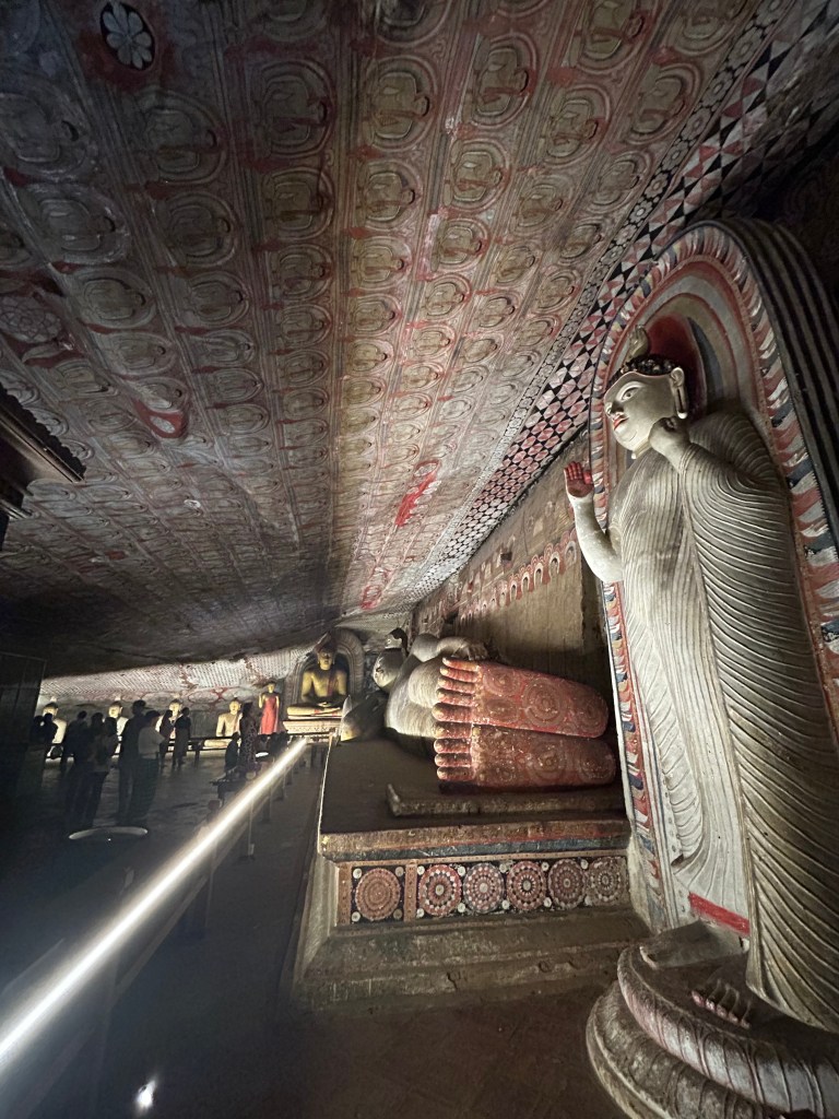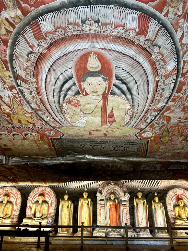 1991年に世界遺産に登録された5つの石窟からなる寺院で、紀元前3世紀に修行の場として開窟が始まり、紀元前1世紀にシンハラ王朝のワッタガーマニー・アバヤ王が戦勝を記念し建立