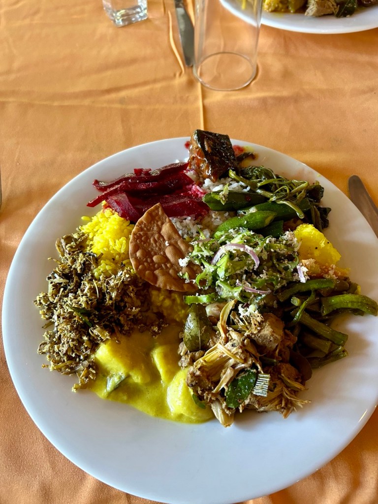 下の写真がレストランで、バイキングだったので好きなおかずを食べまくっていると、どこからともなく可愛い猫が出てきました。スリランカは野犬とカラス(と山に猿)が沢山いるイメージですが、野良猫?も普通にいるんですね。